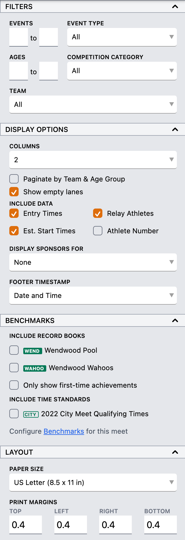 - Printing heat sheets: Creating Heat Sheets