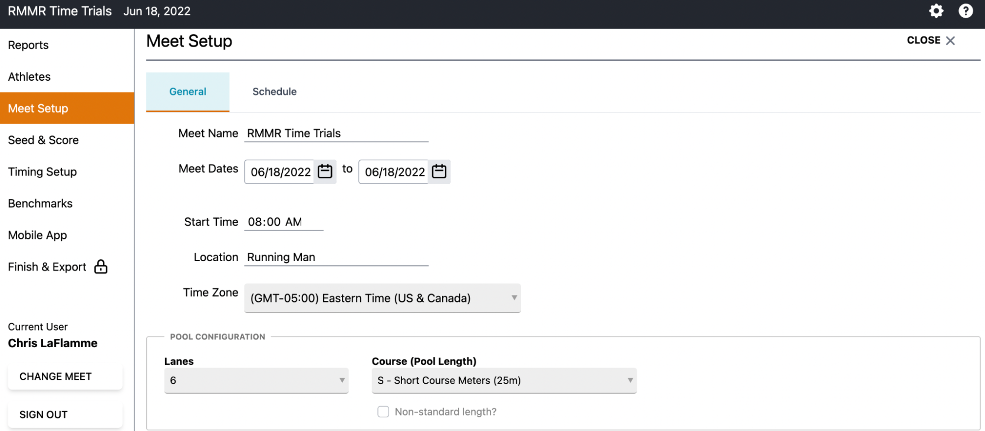 - Exporting results: Export Meet Results