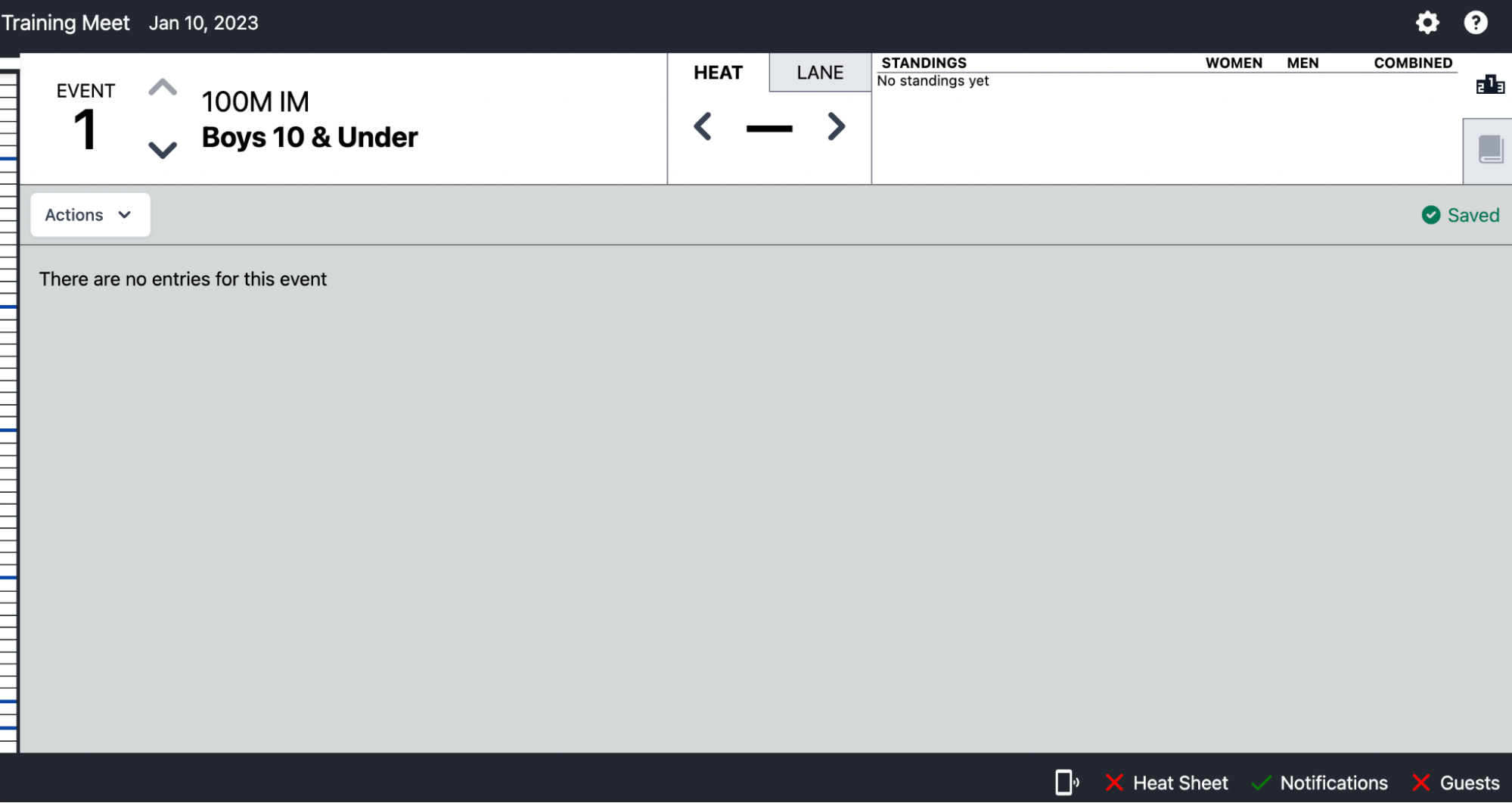 Once in Meet Maestro, scorekeepers can navigate heat to heat, event to event, using the left and right arrows at the top-middle of the screen